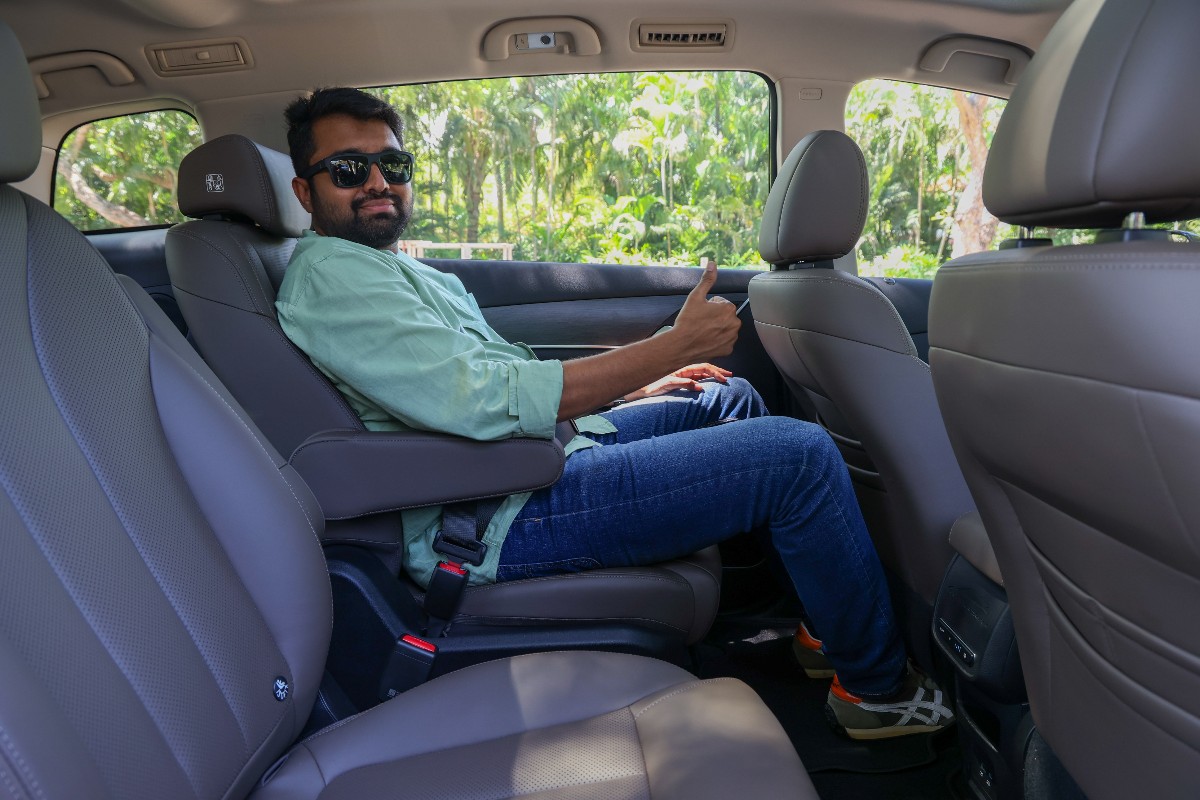 The third row surprises with its spaciousnessSeat comfort, in general, needs improvement. The front seats slope downwards, and the rest lack adequate thigh support. Given that MPVs are often used for long trips, the seat cushioning should have been better. In this area, the Innova HyCross still leads by a significant margin.