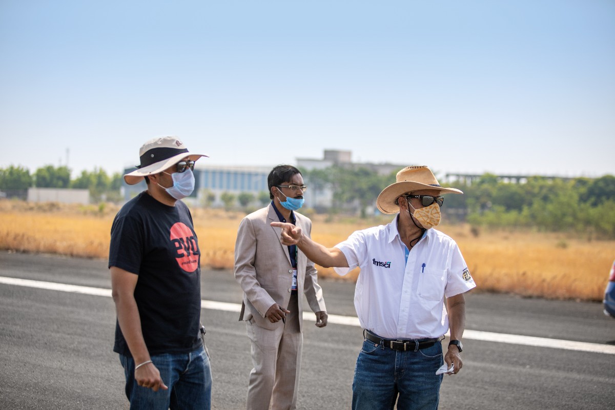 With his first attempt not quite making the mark, Hrishi felt the weight of expectations on his shoulders. Lining back up at the start, he spent a few moments in quiet contemplation; his eyes set on the horizon at the Baramati airstrip, the only stretch of road long, wide and smooth enough for the record attempt. He then gave the thumbs up to the vehicle carrying the adjudicators from both the FMSCI and India Book of Records, who would be measuring the distance using the Racelogic VBox Touch.