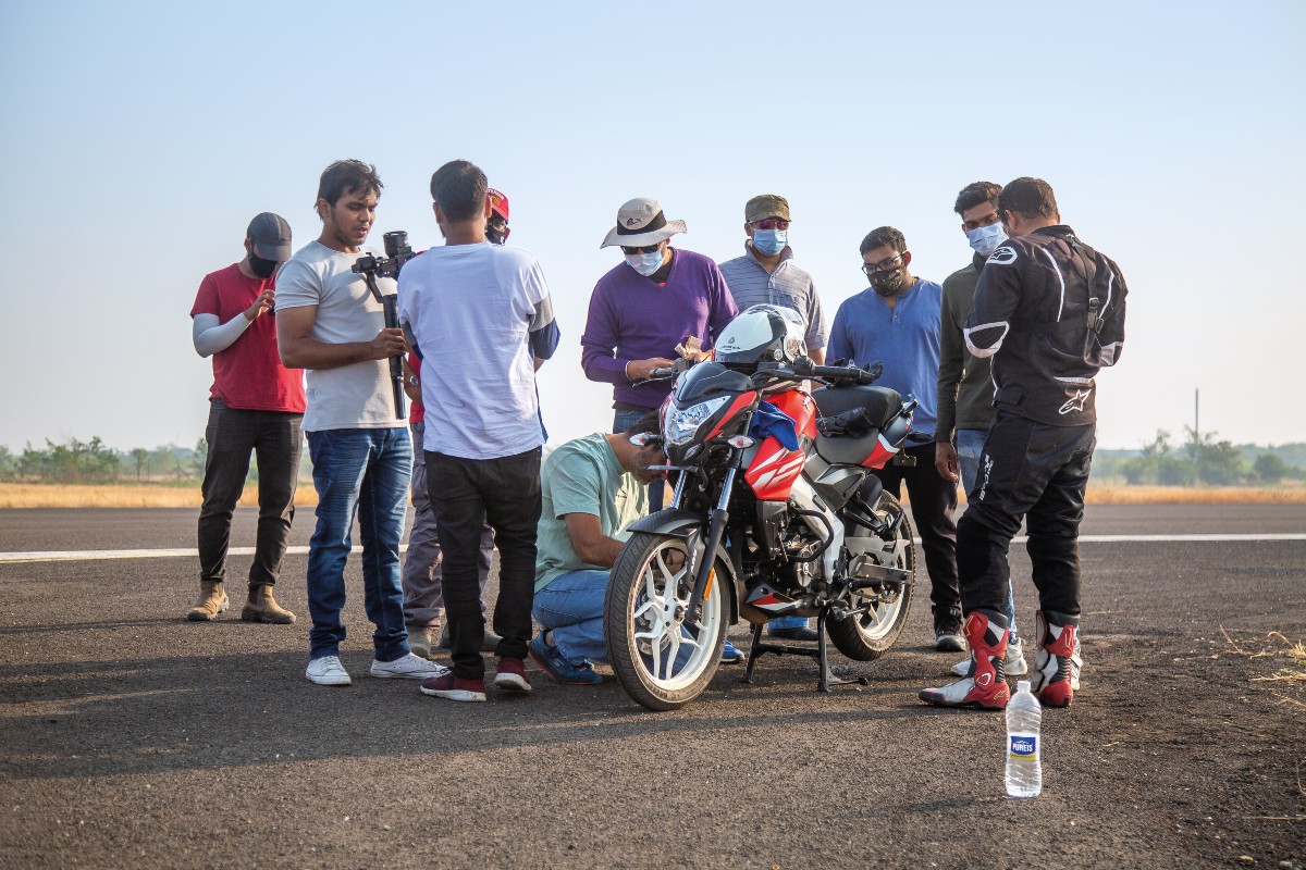 From the absolute barrage of responses we got, the no hands wheelie stood out. Some more research into the topic revealed that the world (!) record for the same stands at 89 metres, set by a rider in the Netherlands in 2004. “Do-able,” said Hrishi, with a mischievous glint in his eye; and so we once again charted the course for the Baramati airstrip.