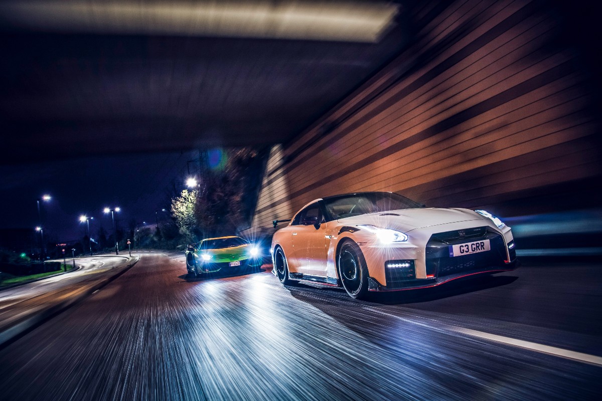 The gap ebbs and flows. The Lambo feels more neutral and tends to push at the front before threatening to oversteer. The GT-R is edgier thanks to the explosive power delivery and greater front-end grip. I guess if you wanted to get from A to B as fast as possible you’d probably just about go for the Nismo. Or a 911 Turbo S, McLaren 720S, a Ferrari F8 Tributo, maybe even a Civic Type R when conditions are as challenging as they are today.