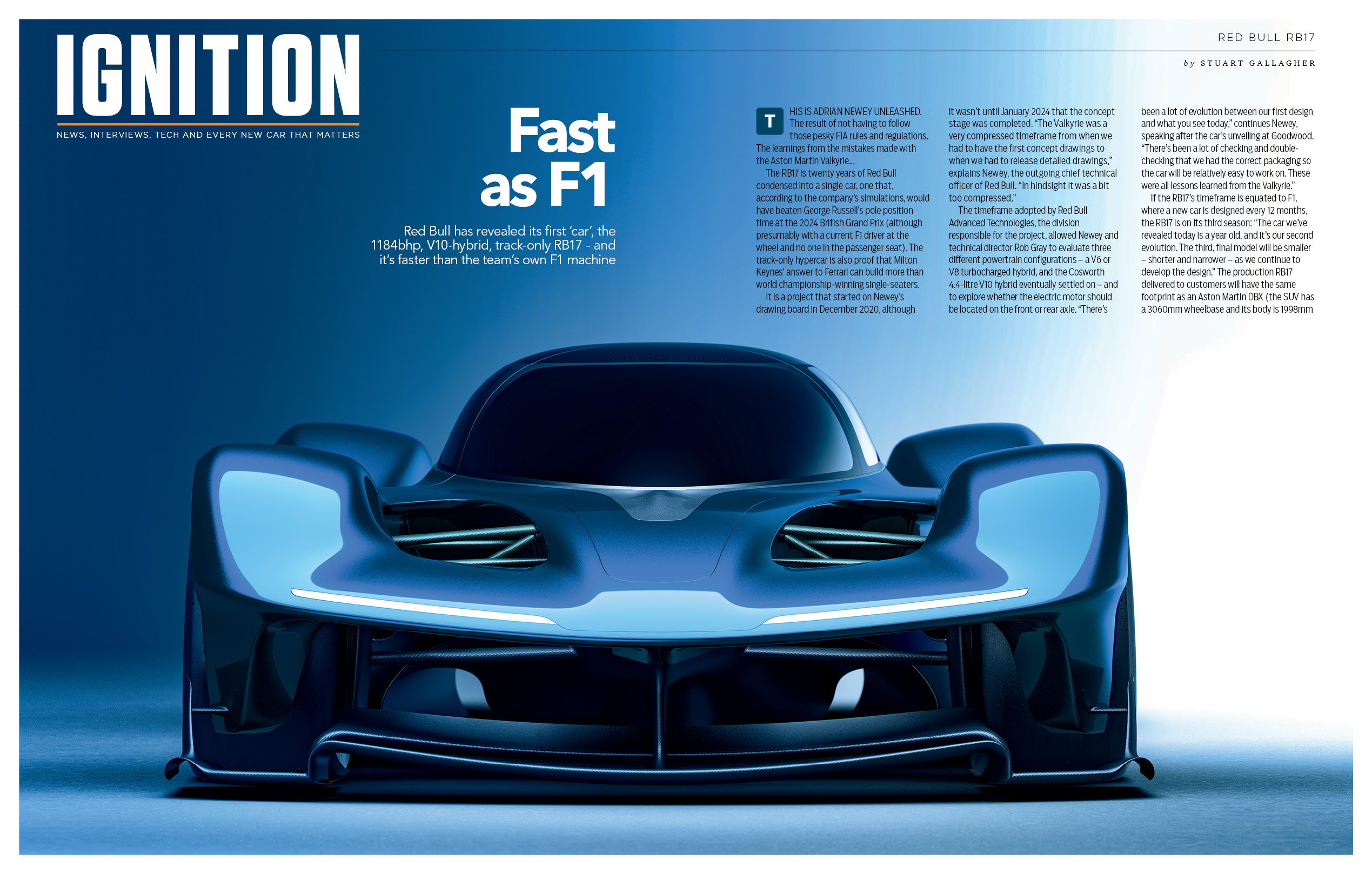 This track-only hypercar is a showcase of Red Bull’s might and Adrian Newey’s design prowess but without the constraints of a rule-bound racing series. This V10-hybrid monster boasts 1184bhp, even more than Red Bull’s own F1 cars. Weighing under 900kg, it features active suspension and aero systems delivering a peak downforce of 1700kg. But this isn’t just a concept. The RB17 will have a limited production of 50 units, arriving in late 2025.