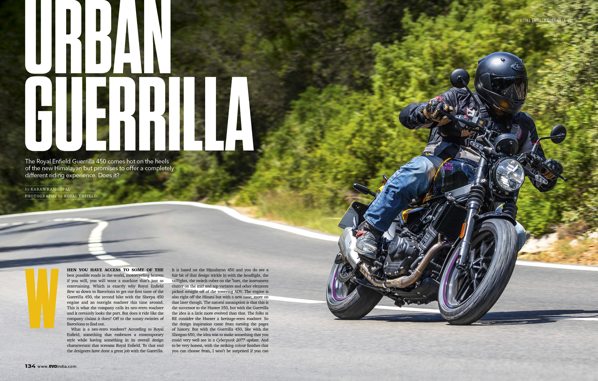 Following the Himalayan 450 comes a new motorcycle based on the same Sherpa 450 platform – but this one is a roadster. With a genuine road bias, funky colours and styling that pushes the boundaries for RE, the Guerilla 450 impresses at our first ride in Barcelona. Best handling Enfield yet? We think so!