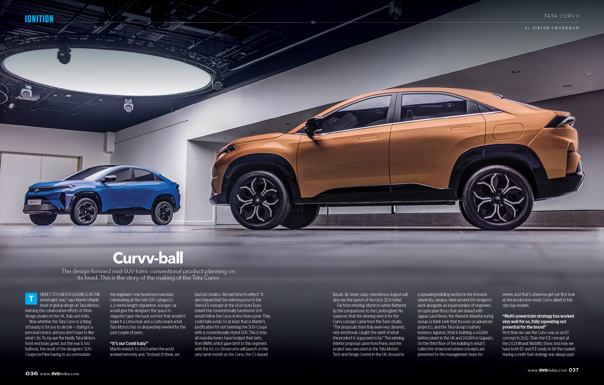 We get our first look at Tata’s mid-size SUV contender, the Tata Curvv, at Tata Motors’ design studio in the UK. We go behind the scenes with Martin Uhlarik, global head of design for Tata Motors, who talks us through the design elements of this coupe SUV and gives us a tour of the UK facility.